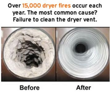 Save $25.00 off the regular price ($100.00) of a dryer vent cleaning when scheduled with a furnace (or) air conditioning service. Why is it important to have your dryer vent cleaned? Debris and lint inherently collects within the turns, bends, crevasses and low laying areas of your dryer vent resulting in poor exhaust air flow. Inadequate air flow from your dryer causes drying times to increase and places strain on your dryer. This strain causes the dryer to overheat and in turn can cause your heating element, high limit switch, motor and other vital parts to fail prematurely and ultimately leaving your dryer inoperable. More importantly, dryer lint is very flammable and having a clogged dryer vent can and will lead to a fire. - The Consumer Products Safety Commission shows that there are an estimated 15,500 fires, 10 deaths, and 310 injuries associated with clothes dryers each year.